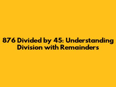Hey guys! Today, we're diving into a fun math problem: figuring out what happens when you divide 876 by 45. Don't worry, it's not as scary as it sounds! We'll break it down step-by-step so you can easily understand the process of long division and remainders. By the end of this, you'll be a pro at tackling similar division problems. So, grab your pencils and let's get started!