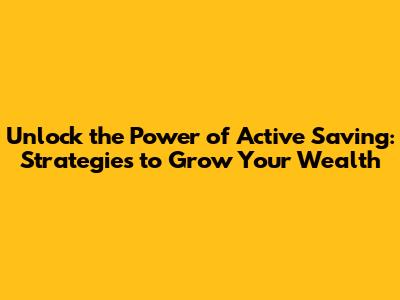 Unlock the Power of Active Saving: Strategies to Grow Your Wealth
