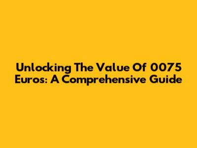 Unlocking The Value Of 0075 Euros: A Comprehensive Guide