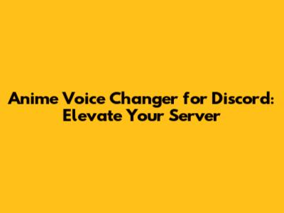 Anime Voice Changer For Discord: Elevate Your Server
