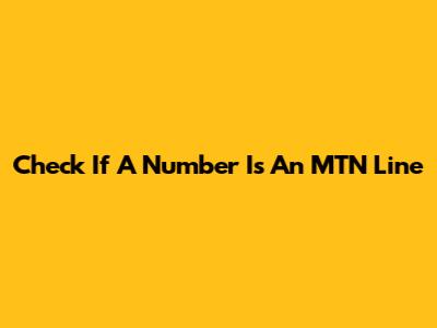 Check If A Number Is An MTN Line