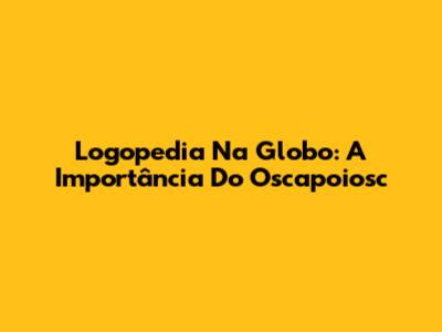 Logopedia Na Globo: A Importância Do Oscapoiosc