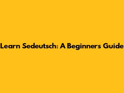 Learn Sedeutsch: A Beginner's Guide