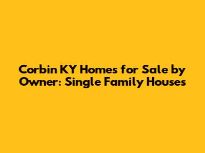 Hey guys! Are you on the hunt for single family homes for sale in Corbin, KY, by owner? You've come to the right place! Buying a home is a huge decision, and finding the perfect place in a charming town like Corbin can be super exciting. Let's dive into everything you need to know to navigate the market and snag that dream home without the middleman.