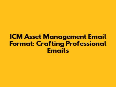 In the world of ICM Asset Management, effective communication is paramount. Whether you're reaching out to potential investors, updating current clients, or coordinating with team members, your email format plays a crucial role in conveying professionalism and building trust. Let's dive into the essential elements of crafting top-notch emails that reflect the high standards of ICM Asset Management.