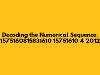 When you're faced with a numerical sequence like this, the first step is to break it down into smaller, more manageable chunks. We can see several distinct numbers: 1575160815831610, 15751610, 4, and 2012. Each of these could represent something different, or they might be interconnected in some way.