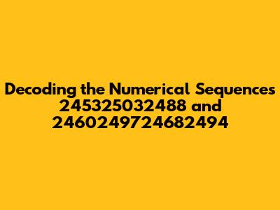 Hey guys! Ever stumbled upon a random sequence of numbers and wondered what it could possibly mean? Well, today we're diving deep into two such numerical sequences: 245325032488 and 2460249724682494. These strings of digits might seem like gibberish at first glance, but let's explore potential interpretations and contexts where they might appear. We'll break down the possibilities, from simple identification codes to complex data representations. So buckle up, and let's get started on this numerical adventure!