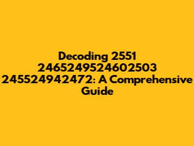 Hey guys! Ever stumble upon a string of numbers that just looks like a bunch of gibberish? Well, you're not alone. We're going to dive deep into understanding what "2551 2465249524602503 245524942472" is all about. This seemingly random sequence of digits actually represents something, and by the end of this guide, you'll be able to decode it. Let's get started, shall we?