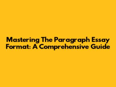 Mastering The Paragraph Essay Format: A Comprehensive Guide