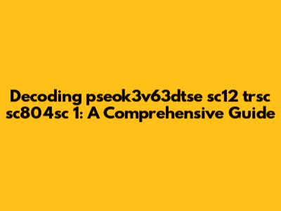 Alright, guys, let's dive into this seemingly cryptic string: pseok3v63dtse sc12 trsc sc804sc 1. At first glance, it looks like a jumble of random characters and numbers. But don't worry! We're going to break it down and see if we can extract any meaning or context from it. It's highly probable that this string is some kind of identifier, code, or reference number used within a specific system or application. Think of it like a serial number for a product or a transaction ID for a purchase. Understanding these types of strings is crucial in various fields, from IT support to data analysis, and even in everyday troubleshooting of electronic devices or software. The first step is always to observe the different segments and patterns. We see alphanumeric characters mixed together, separated by spaces. The sc prefix might stand for something, and the numbers probably have a specific meaning too. Let's try to dissect this further by looking at each component individually and trying to relate it to a potential use case. Remember, context is everything! Without knowing where this string came from, it’s like trying to solve a puzzle without the picture on the box. So, bear with me as we explore different possibilities and try to make sense of this encoded message. Ultimately, the goal is to equip you with the skills to approach similar complex strings and decipher their meaning, or at least, understand their structure and potential purpose.