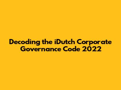 Hey everyone! Ever heard of the iDutch Corporate Governance Code 2022? It's a big deal in the Netherlands, and for good reason! This code is all about how companies should be run, making sure they're fair, transparent, and responsible. Think of it as the rulebook for businesses, ensuring everyone plays by the same set of standards. In this article, we'll dive deep into the iDutch Corporate Governance Code 2022. We’ll break down what it is, why it matters, and what it means for companies operating in the Netherlands. We'll explore the key principles, its impact on stakeholders, and how it differs from previous versions. So, grab a coffee, and let's get started on understanding this crucial code!
