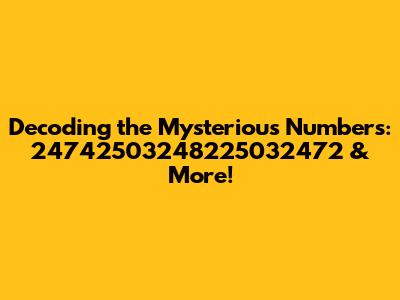 Alright, let's start with the big one: 24742503248225032472. Just looking at it, you can't help but wonder, what in the world does this number even represent? Is it a date? A code? A secret password? The truth is, without context, it's tough to say for sure. But that's where the fun begins! We can approach this number from various angles, analyzing it for possible patterns, or connections to other known data. It's like being a digital archaeologist, digging through layers of information to unearth the hidden meaning.