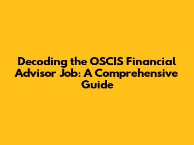 Hey there, future financial gurus! Ever wondered what it truly means to be an OSCIS Financial Advisor? Or maybe you're already in the field and want a clearer picture? Well, you've landed in the right spot! This guide is your ultimate playbook, breaking down the OSCIS Financial Advisor job role in detail. We'll explore the nitty-gritty of the job, the skills you'll need, the day-to-day tasks, and how to kickstart your journey. So, grab a coffee (or your favorite beverage), get comfy, and let's dive into the fascinating world of financial advising!