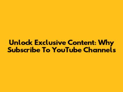 Unlock Exclusive Content: Why Subscribe To YouTube Channels
