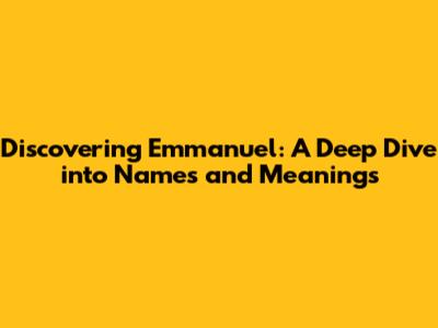 Cultural Significance of Emmanuel