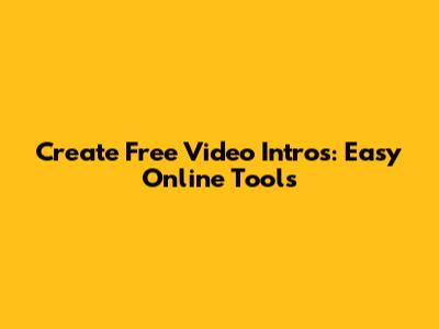 Create Free Video Intros: Easy Online Tools