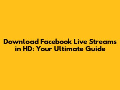 Hey guys! Ever wanted to download those awesome Facebook Live streams you've watched? Maybe you saw an amazing tutorial, a hilarious comedy set, or a crucial piece of information that you want to keep handy. Well, you're in the right place! We're diving deep into the world of downloading Facebook Live streams in HD, covering everything from the why to the how. Forget blurry replays; we're talking crystal-clear, high-definition downloads that you can keep forever. We'll explore the different methods, from using built-in features to employing handy third-party tools. So, buckle up, grab your favorite snacks, and let's get started on this exciting journey to preserving your favorite Facebook Live moments.