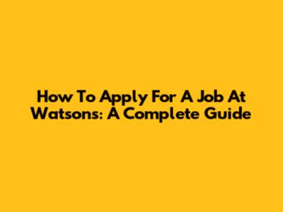 How To Apply For A Job At Watsons: A Complete Guide