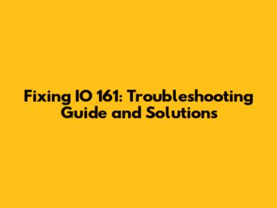 Troubleshooting the IO 161 Error: Step-by-Step Guide