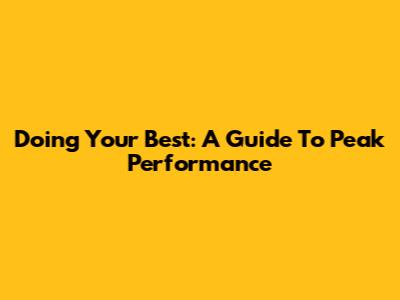 Doing Your Best: A Guide To Peak Performance