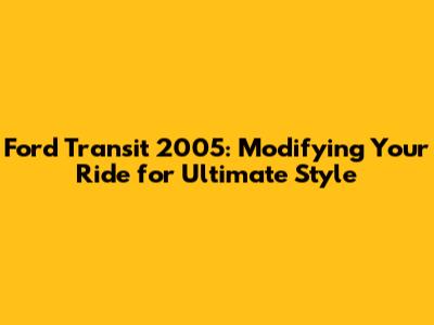 So there you have it, a comprehensive guide to modifying your Ford Transit 2005! From exterior enhancements to interior comforts, performance upgrades to full-blown camper conversions, the possibilities are truly endless. Remember, the key to a successful modification project is careful planning, realistic budgeting, and a willingness to learn and experiment. Don't be afraid to get your hands dirty and try new things. With a little effort and creativity, you can transform your Transit into a personalized masterpiece that reflects your unique style and personality. Whether you're using your Transit for work, play, or travel, these modifications will enhance your driving experience and make your van a true reflection of you. So go ahead, start planning your dream Transit today! And don't forget to share your progress with the Transit community – we're all here to support and inspire each other. Happy modifying!