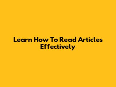 Learn How To Read Articles Effectively