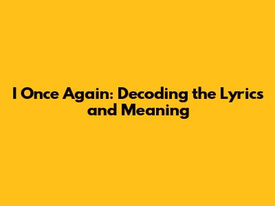 Hey guys! Have you ever listened to a song and felt like it was speaking directly to your soul? That's the power of music, right? Today, we're diving deep into a song that's been making waves and tugging at heartstrings: "I Once Again." We're not just going to listen to it; we're going to dissect it, explore its hidden meanings, and uncover the story behind the lyrics. So, grab your headphones, put on your thinking caps, and let's get started!