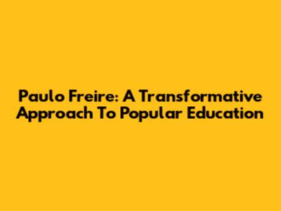 Paulo Freire: A Transformative Approach To Popular Education