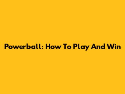 Powerball: How To Play And Win