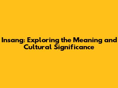 What Exactly is Insang?