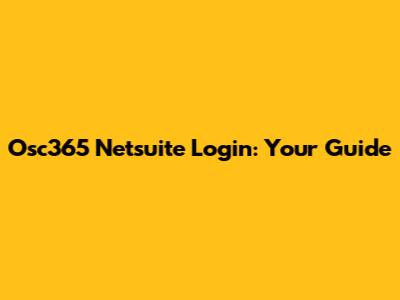 Osc365 Netsuite Login: Your Guide