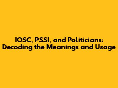 - Politicians often use IOSC and PSSI to talk about sports policy, funding, and national pride. They might praise the organizations, criticize them, or use them to advance their political agendas.