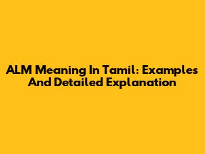 ALM Meaning In Tamil: Examples And Detailed Explanation