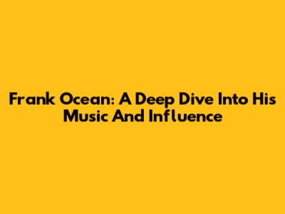 Frank Ocean: A Deep Dive Into His Music And Influence