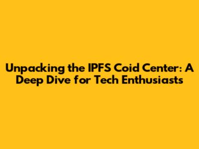 Diving Deeper: The Technical Backbone of the IPFS Coid Center