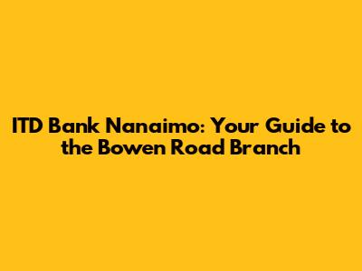 Hey guys! Ever find yourself needing to swing by ITD Bank in Nanaimo, specifically the Bowen Road branch? Whether you're a long-time resident or just passing through, knowing the ins and outs of your local bank branch is super helpful. This guide is here to give you all the essential info you need about the ITD Bank Nanaimo Bowen Road location. Let's dive in!