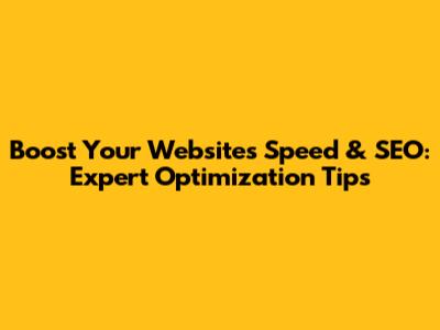 Boost Your Website's Speed & SEO: Expert Optimization Tips