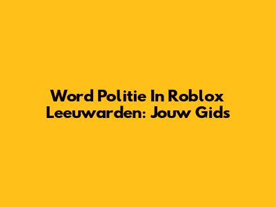 Word Politie In Roblox Leeuwarden: Jouw Gids