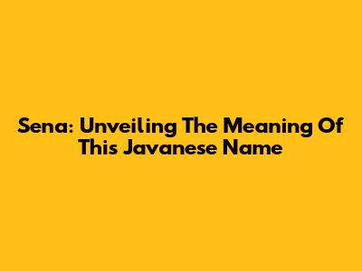 Sena: Unveiling The Meaning Of This Javanese Name