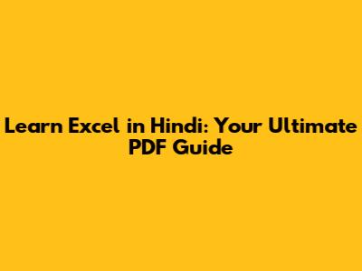 Finding the Best Excel PDF Guides in Hindi: Resources & Recommendations