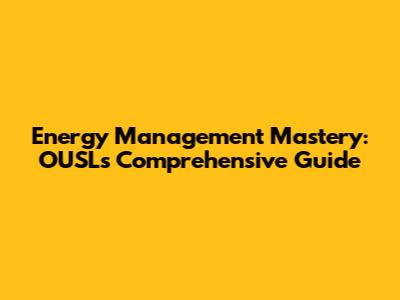 Energy Management Mastery: OUSL's Comprehensive Guide