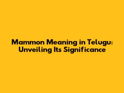Hey guys! Ever heard the word Mammon thrown around and wondered, "What in the world does that even mean?" Well, you're in the right place! We're diving deep into the fascinating world of Mammon, specifically exploring its meaning in Telugu. This is not just a simple translation; we'll explore the deeper significance, the historical context, and how it resonates even today. So, grab a cup of coffee, sit back, and let's unravel the mystery of Mammon in Telugu together!