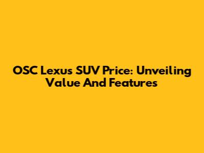 OSC Lexus SUV Price: Unveiling Value And Features