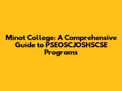 Hey guys! Are you looking into higher education opportunities and trying to figure out what's what at Minot College? Specifically, are you scratching your head over the acronym PSEOSCJOSHSCSE? Don't worry; you're not alone! This guide will break down everything you need to know about programs at Minot College. We'll explore what PSEOSCJOSHSCSE might stand for in the context of Minot College, the courses offered, the faculty, student life, and how to make the most of your time there. So, buckle up and let’s dive in!
