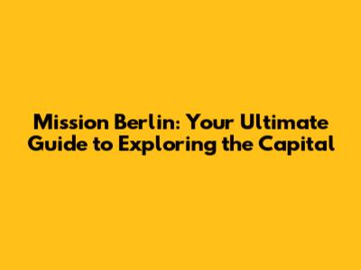 Hey everyone, and welcome to Mission Berlin! If you're planning a trip to this incredible city, or even if you're a local looking to rediscover its magic, you've come to the right place. Berlin isn't just a city; it's a living, breathing entity with layers of history, a vibrant contemporary culture, and an energy that's absolutely infectious. From its iconic landmarks to its hidden gems, there's always something new to discover. This guide is your mission, should you choose to accept it, to unlock the secrets of Berlin and make your visit an unforgettable adventure. We're going to dive deep into what makes this city so special, covering everything from must-see historical sites to the coolest neighborhoods, the tastiest food spots, and even some tips on how to navigate the city like a pro. So, grab a virtual coffee (or a real one, if you're already here!), and let's embark on this exciting journey together. Get ready to fall in love with Berlin, guys!