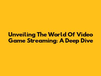 Unveiling The World Of Video Game Streaming: A Deep Dive