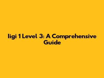 Iigi 1 Level 3: A Comprehensive Guide