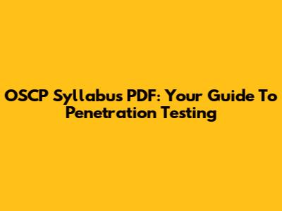 OSCP Syllabus PDF: Your Guide To Penetration Testing