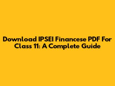 Download IPSEI Financese PDF For Class 11: A Complete Guide
