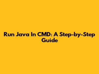 Run Java In CMD: A Step-by-Step Guide